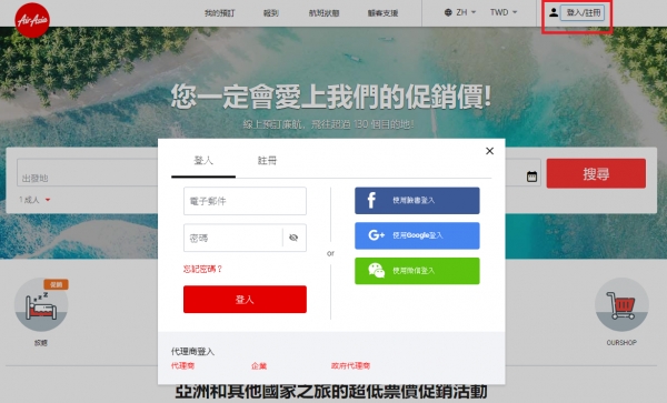 亞洲航空官網:https://www.airasia.com/booking/home/zh/tw