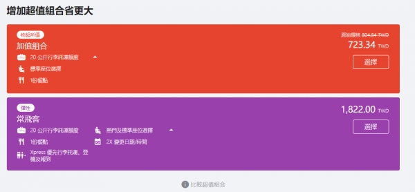 ▼Step 4.接下來選擇是否另外購買行李,機票包含七公斤的行李額度,其實去穿著輕便的海島國家已經足夠,怕超重的朋友建議可以和朋友一起合買,平均一下一人也只要幾百元相當划算。