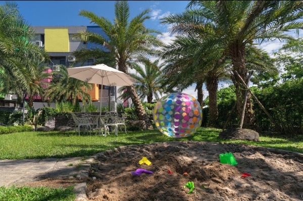 烤肉區(碳烤肉架,鐵板煎台,快速爐,大冰箱) 、兒童遊戲區 、兒童沙灘區 、露天咖啡座、中庭花園、 頂級KTV視聽室音響。