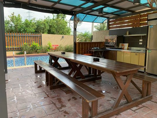 除了除了泳池、烤肉區之外,麻將桌當然是必備了呀~~