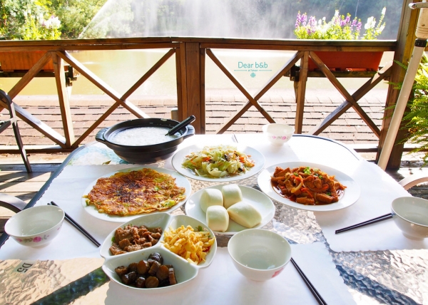 這邊還有提供多種道地美食與自釀美酒,烤草莓啤酒雞、德國豬腳通通必點啊!面湖享用著豐盛中式早餐,實在是太愜意啦!