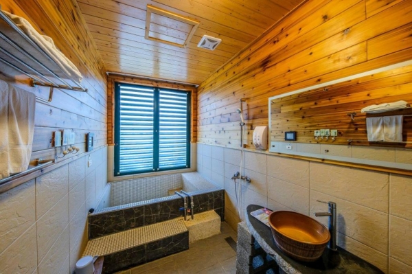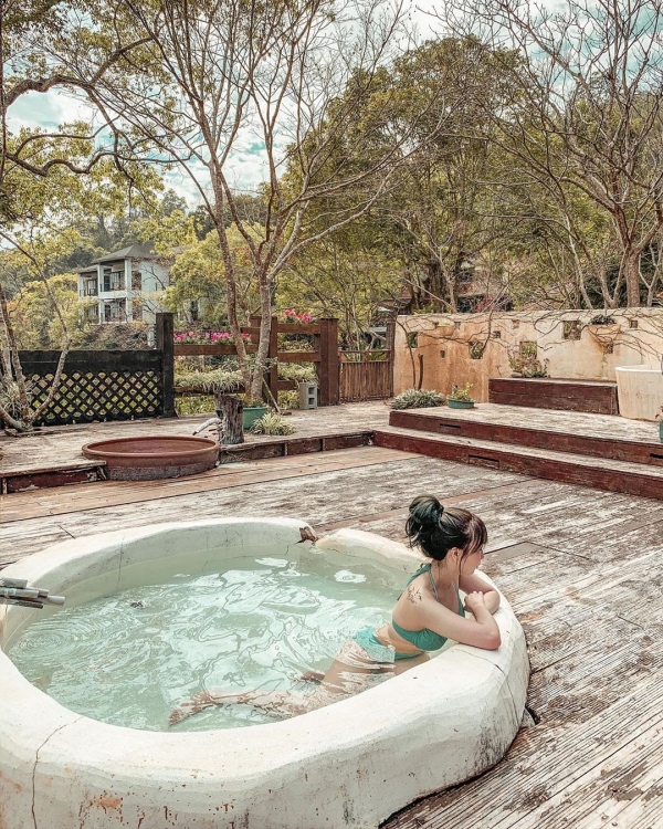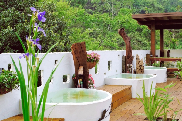 這個原石打造的特色湯池,也是傳說中的美人湯,貼近大自然的設計風格,讓你在樹蔭下花叢邊,輕鬆自在的泡在純淨湯泉裡!
