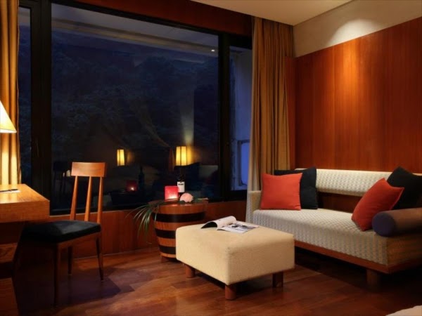 其房間數不多,但每一間都非常有質感且舒適,如果想要幽靜的度假,這邊絕對是你的最佳選擇!最吸睛的就是這間山水客房,在房內就能望著窗外溪水,彷彿來到山谷裡住一晚, 超級享受!