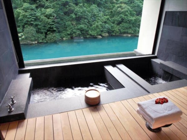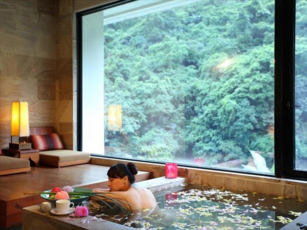 浴室裡乾淨又舒適,還有附個人湯池,讓人可以獨享美人湯!邊泡澡邊賞外面絕美景致也太浪漫了吧!