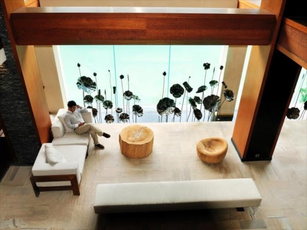 一踏進大廳就能看見各式藝術品,帶有一種原住民意象和大自然純樸,再搭配窗外的絕美山景簡直完美!