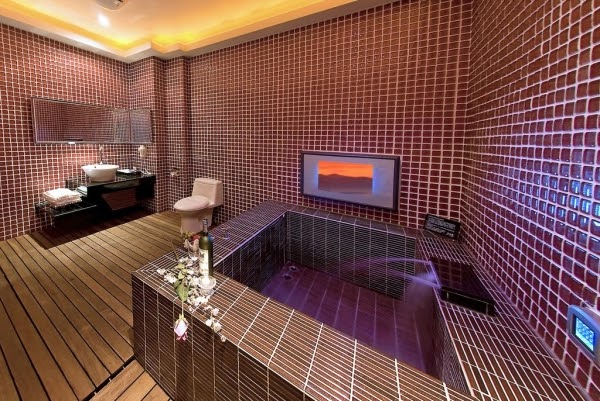 除了高級泡澡按摩浴缸之外,外面還有個奢華戲水池,以這樣的價格能夠住到有泳池的房間,真的是物超所值呢!