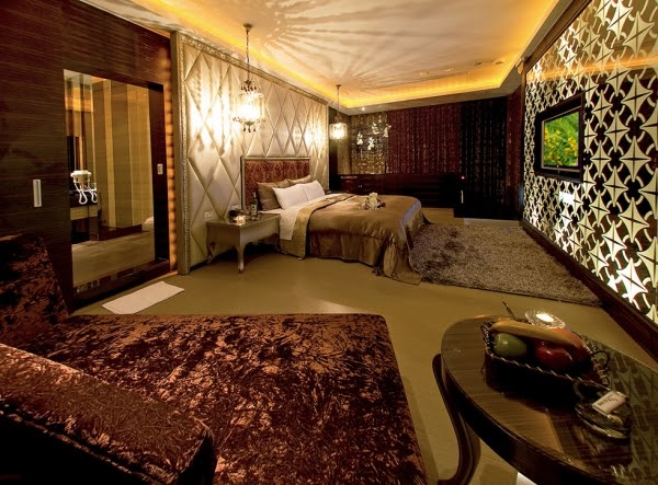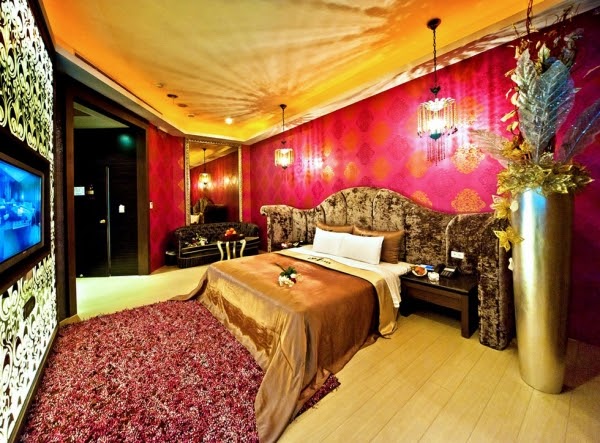 館內空間寬敞、設施相當時尚,還有多種房型讓你選擇!最吸睛的是這間VIP套房,房內還設置景觀池、牛奶浴、SPA及精緻馬賽克泡澡按摩浴缸,還有這間沙國主義PARTY房,以阿拉伯宮廷風為裝潢設計,空間超大又舒適,真是太讚啦!