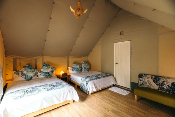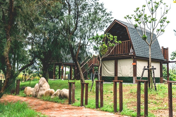 園區內擁有32座豪華露營帳篷,每個豪華露營帳皆親海,除了汕海、禾風、風野三款不同風格造型的帳蓬,還有海景第一排視野極佳的海上屋納海木屋帳,頗有異國風情~