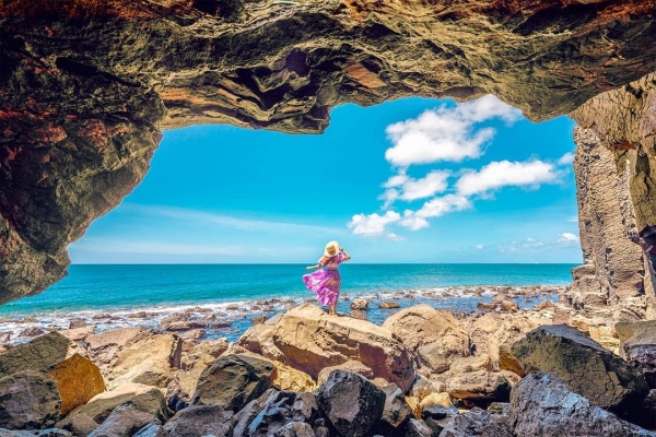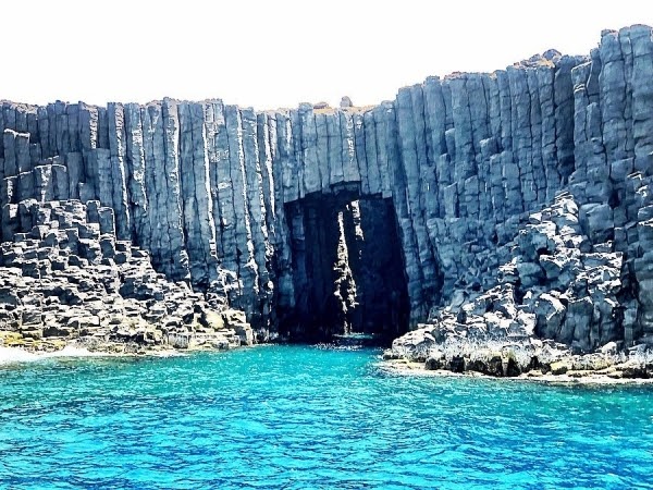 玄武岩海崖經過海蝕作用,形成一個巨洞,看起來有點像是一隻鯨魚的頭部~人們習慣稱這裡為鯨魚洞,是不是很像一隻鯨魚呢?