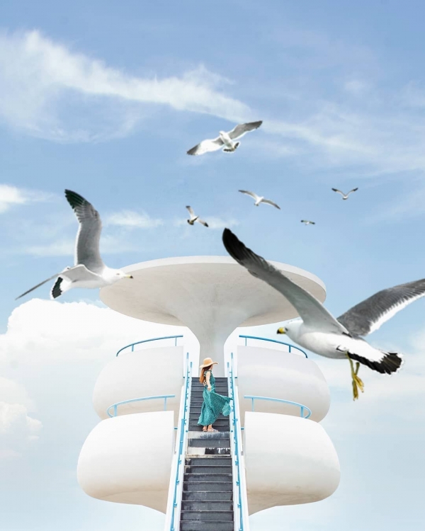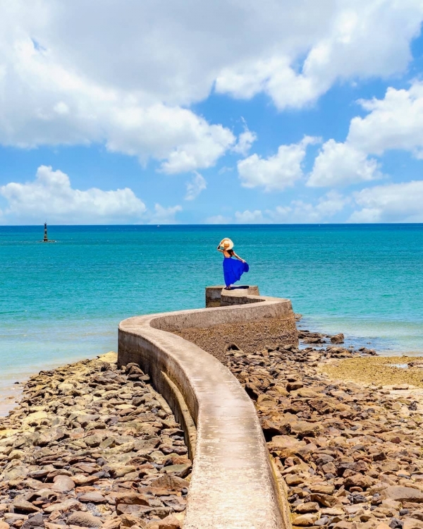 這邊是荒廢已久的舊碼頭,走進沙灘步道,蜿蜒的小路能直達碧綠海中央,從空中拍下像一條在海上玩耍的小龍,相當俏皮可愛!