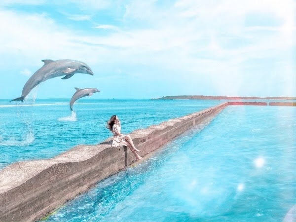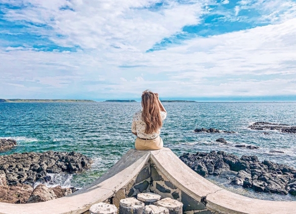 位在澎湖水族館旁的海堤,因形狀像是海波浪一樣一層又一曾因此命名為波浪海堤,坐在這上面直接與海連成一線!