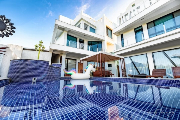 純白色的建築配上大片的玻璃,讓人離不開的慵懶氛圍,就在山水沙灘附近,陽光棕櫚渡假民宿讓你與世隔離遠離塵囂,讓你體會真正渡假的feel 。