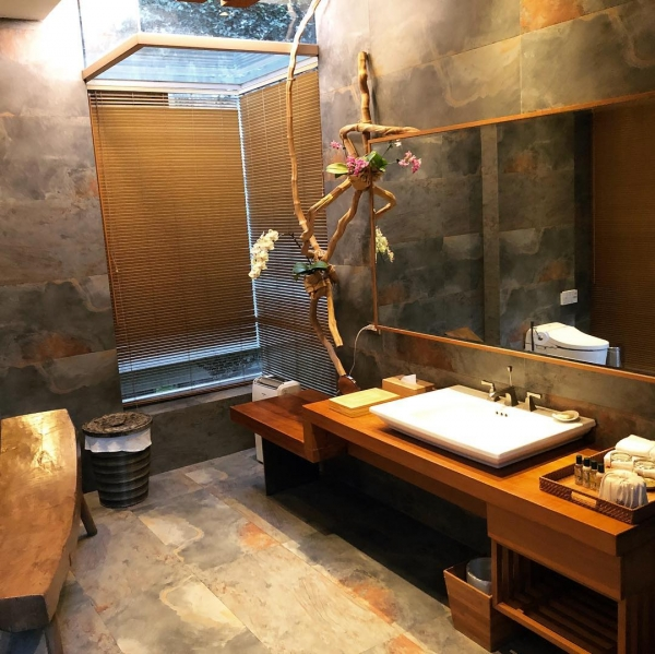 「樹泉」則是將大樹保留在房間建物內,搭配透明的落地玻璃窗,就像住在樹屋般,與戶外的林間綠意相融在一起;「晴川」則是可以一邊泡澡、一邊欣賞龍騰斷橋。