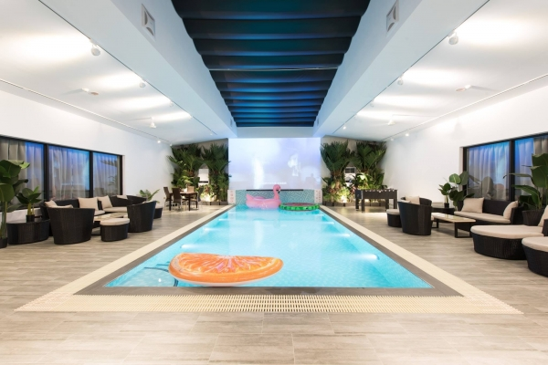 館內有超多玩樂設施,有室內泳池、全套歐式廚房及抽風設備,還能烤肉、烹調,並提供250吋超大投影的影音設備,讓人可以看電視、播放影片及KTV歡唱,還提供麻將桌,手足球台等等,是不是很讚!