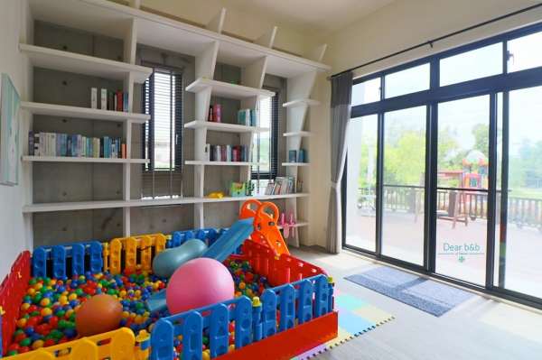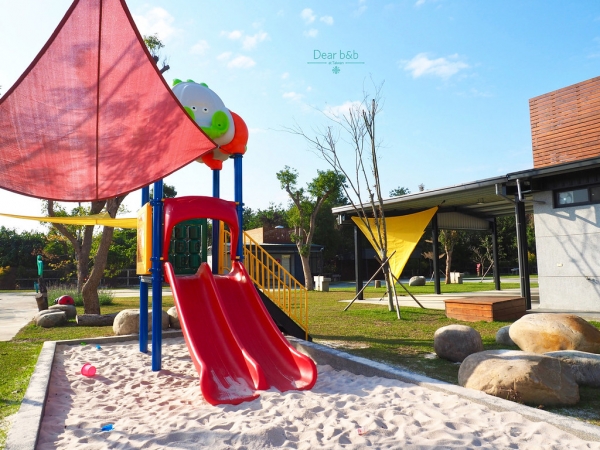 走進園區就會看到一大親子遊戲場,繽紛亮眼的溜滑梯配上沙坑,小孩最佳放電場所都在這啦~不用怕沒地方跑跳,進入大廳後,簡約工業風的設計,清新又乾淨,也有兒童讀書式、迷你球池等等~