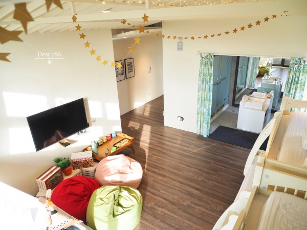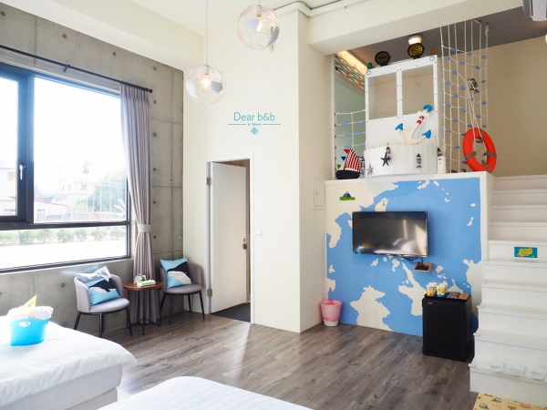 除了太空夢以外另一個就是海盜夢了吧!走進房內最吸睛的就是貼滿牆壁的海洋地圖,還有船錨小閣樓的設計,小朋友入住後一定迫不急待想要啟航出發了吧!