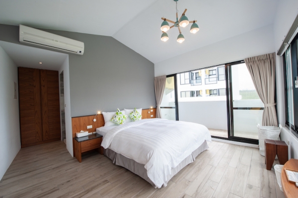 灰色調與原木色調的搭配,溫馨又舒適,有時候和朋友來旅行,覺得睡雙人床會搶棉被或尷尬,也可以選擇雙床房型,空間更加寬廣,也獨享私人陽台,可以一起賞海景,吹海風,聊心事!