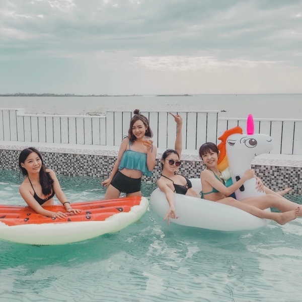 來渡假就是需要有無邊際泳池阿,民宿老闆有提供多樣豐富的造型游泳圈,讓你玩到瘋拍到爽,而且看出去就是大海,渡假風滿分,如果一群好朋友來玩,也可以選擇包棟住宿,整棟都是自己的才能玩得盡興!