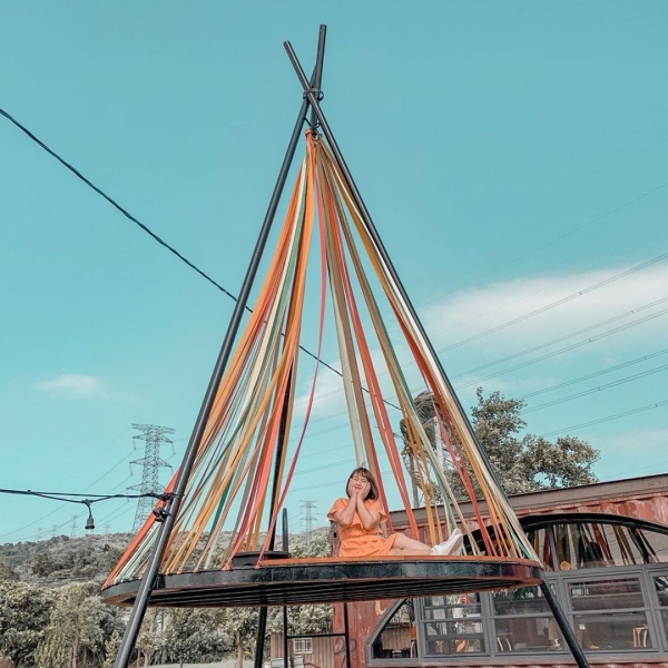 除了池畔邊的發呆亭、躺椅外,還有一個高空版的休憩區,三角彩條狀的裝飾,好夢幻阿~