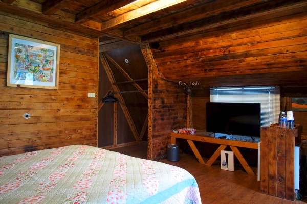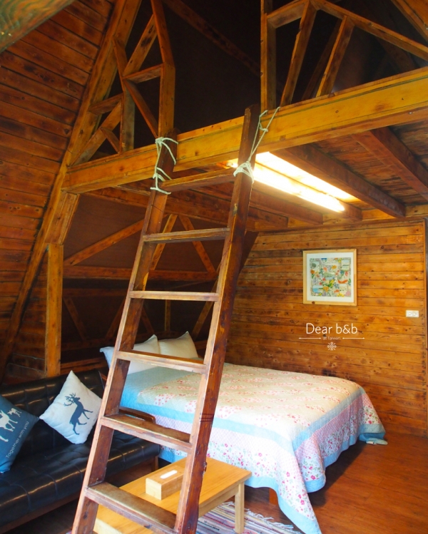 小木屋分為白色三角形屋頂木屋及雙拼的咖啡色木屋,還有個小閣樓部分,有夠可愛!