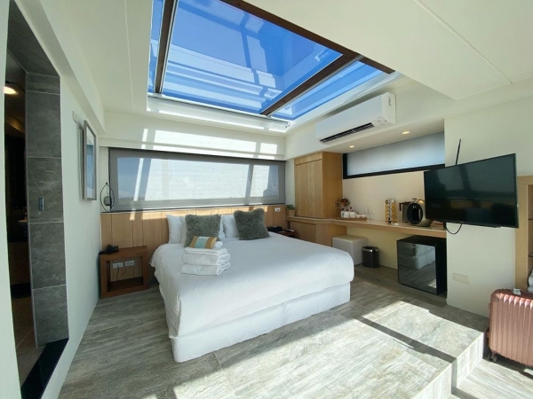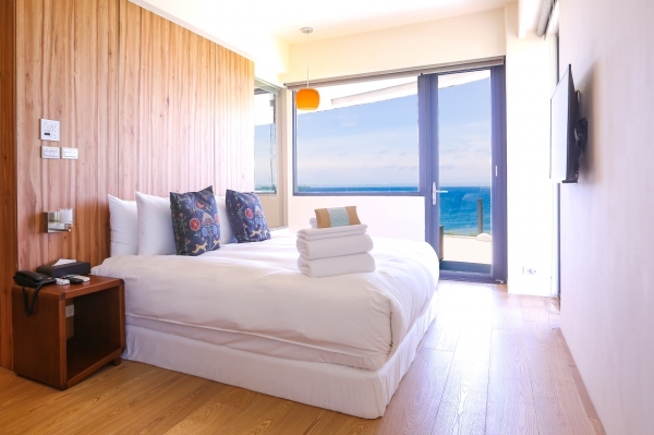 房內寬敞舒適、採光佳,還有個超大私人陽台,坐在這邊喝咖啡、吹海風配海景,享受愜意的午後時光!