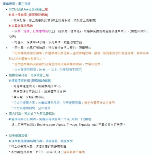 另外官網還有推出多種訂房優惠專案,其中「金龜敞篷兜風趣」還可以讓你免費開金龜敞篷車兩天,是不是超酷!趁著休假快與好友來一場澎湖之旅吧!