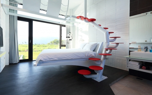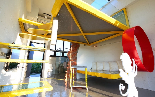 這張床只有一個小支點與地面連接,完全沒有規矩可言的樓梯,連接上通往寬闊視野的秘密基地,「No.1208」直接顛覆你對房間的想像!