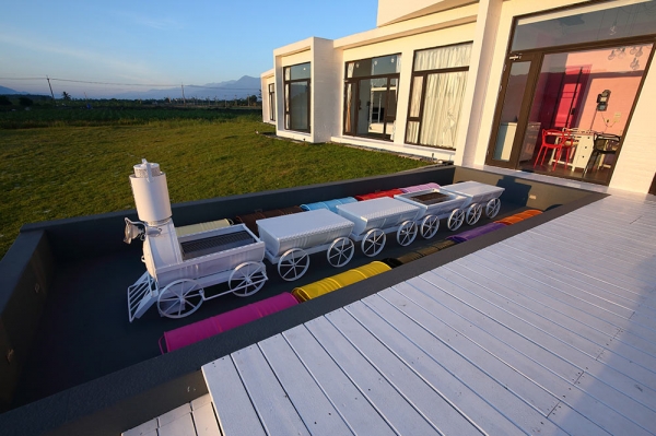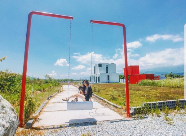 民宿外觀以方塊堆疊而成,打造出像魔術方塊般的神奇建築,還設有停車場可供停車,也有超好拍的純白鞦韆及火車頭造型烤肉架,好多人來這邊都會搶著拍照呢!