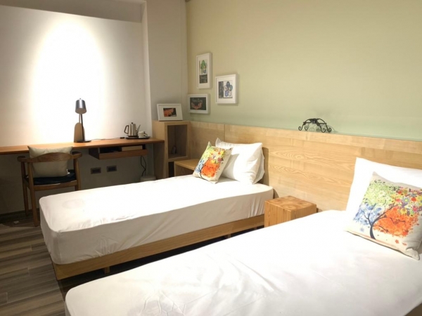 房間採簡約風格設計,空間寬敞舒適,其溫馨的色調就像身在自家一樣舒適!