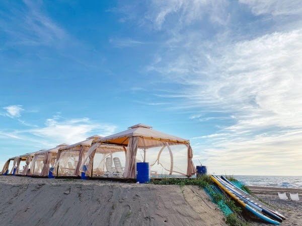 除了親水樂園,周邊的休閒渡假中心也新推出了各種設施,提供濱海露營觀星的超棒體驗,像是泡泡冰屋、希臘羅馬帳等等,甚至還有露營車可以入住,暑假來臨,不知道帶小孩去哪裡玩,這裡會是遛小孩的新選擇!