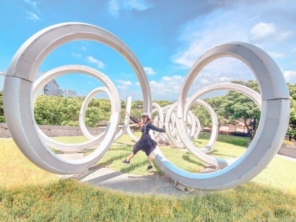 位於行政大樓前的圓圈裝置藝術,從每個角度都能看到不同的景色,也因次成為IG超夯打卡點!
