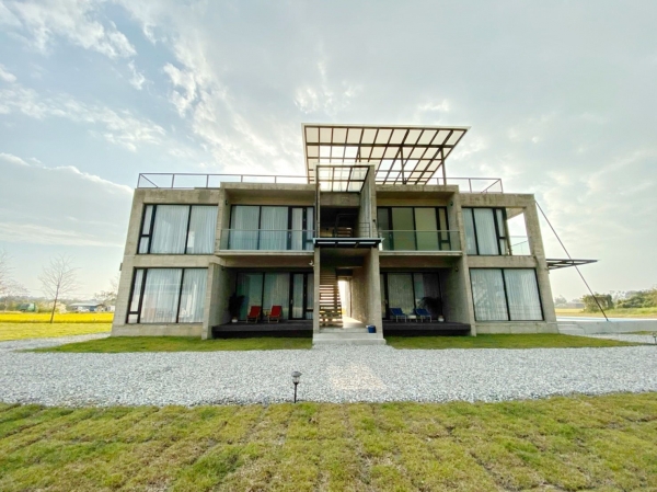 隱藏於花蓮的「方舟島Villa」佇立在水田邊,簡約的清水模玻璃屋建築搭配大片落地窗設計,能將窗外美景盡收眼底!除了享受遼闊景色外,戶外也有大草坪、無邊際水池可以玩耍,還能帶毛小孩一同出遊呢!