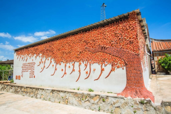 由金門藝術家吳鼎信與在地多位民眾共同打造出高3公尺、寬18公尺的紅磚窯蓋成的木棉花樹牆,其紅磚採用古法窯燒方是鑄成,隨著歲月的痕跡,更能激發出紅磚的魅力,壯觀的畫面怎麼拍都超美,也因此成為超夯IG打卡點!