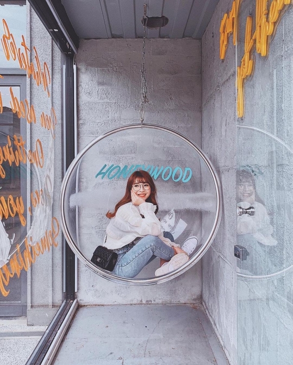 位於平鎮一間超夯的咖啡廳,除了外面有LOVE造景的綠意大草原、夢幻教堂超療癒之外,裡面每個角落也都超好拍,其中最多人搶拍的就是這顆透明球吊椅,有夠夢幻啦!