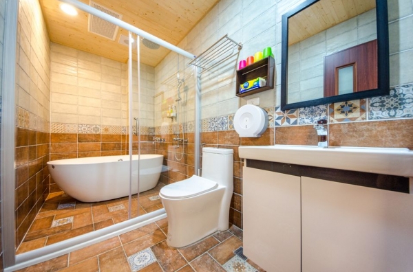衛浴空間乾淨又舒適,採乾溼分離設計,還附有獨立浴缸可以泡澡,讓人享受美好的度假時光!
