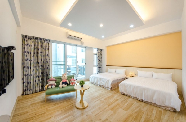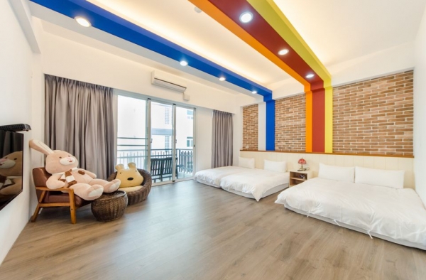 民宿提供了各種主題房型,像是童話風、鄉村風、工業風及南洋風等等,有2間四人房及3間雙人房,最多可容納24人,多變風格滿足您需求!房內空間寬敞舒適且明亮,親子房內還有小城堡與低落差的床組,讓小孩可以盡情玩耍、大人也非常放心!