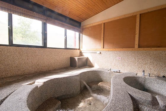 除了大眾池之外,這裡也有湯屋住宿房型,比起一般的湯屋,這裡房間的溫泉池已經算是挺大的,磨石做成的湯池有分兩個,一邊是冷一邊是熱,雙重享受!