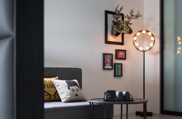 當白色遇上黑色、法式遇上工業風…細緻大理石磚面 、法式窗門,混搭上重金屬味小閣樓、充滿原始感的木橫梁,是古典優雅和復古工業完美的MIX & MATCH。單間雙人套房,有獨立的衛浴及夾層的小閣樓影院。