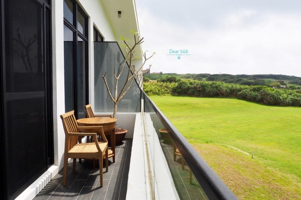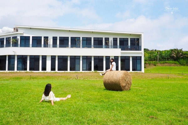 行徑埔頂蜿蜒的小路,到達了高處,就會看到一片綠油油的草地上,佇立了一棟純白的建築,這裡有山有海,有藍天有沙灘,去過的人都說照片無法傳達這裡的美!園區超遼闊,還有幾捲牧草捲在綠地上,枝葉柔軟又乾淨,很適合帶著小孩來這裡放電,也是寵物友善的住宿喔!