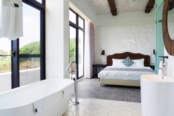 典雅白淨的色調,更讓人放鬆,房內大片的落地窗,可以近乎全景欣賞戶外的綠地美景,房內許多木製配件,真的讓人有一秒來到歐洲鄉村的錯覺,窗景浴缸更是不能錯過的設備!