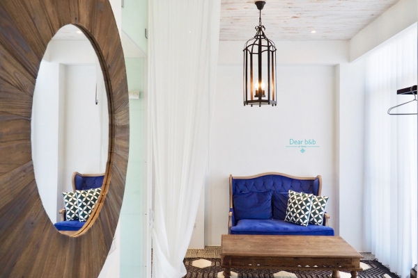 房內還有一座超顯眼的寶藍色沙發,很有質感又帶點奢華感,來渡假就是要選擇這麼享受的房型阿!