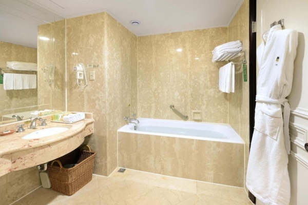 三溫暖浴池,冷熱湯泉雙重享受,還有檜木製成的高溫烤香,而位於五樓,米堤館內的山泉水湯屋,用特殊機器將分子打散而產生微細泡沫,加強血液循環,讓您感受到身心舒暢!