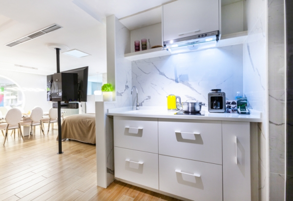 超浮誇的「10人房」根本開趴首選,除了擁有大床鋪、65吋大電視、KTV設備之外,竟然連廚房都有,想要親自下廚完全不是問題!另外每張床舖都還有電視、插座及獨立開關,真的超貼心的啦!