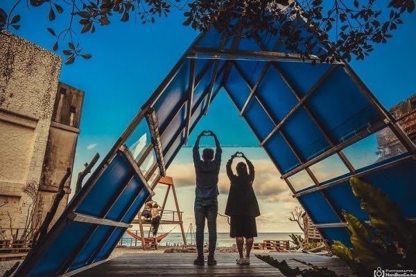 在金山中角沙珠灣旁一間超人氣咖啡廳,寶藍色的外觀在大條道路上最為吸睛,店裡從後方出去直通海灘,看著大海喝完咖啡還可以去踏踏海浪,實在太幸福了!