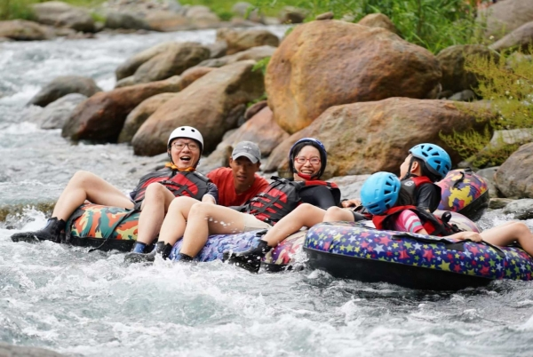 園區還可以體驗「天然漂漂河」徜徉在自然山水中,宛如一葉扁舟任溪水漂流,洗去身心靈所有煩惱,坐著鬆,躺著也鬆,在全套安全設備及專業教練的帶領下,「漂」訪絕美秘境,用最療癒的方式享受台灣山林之美。