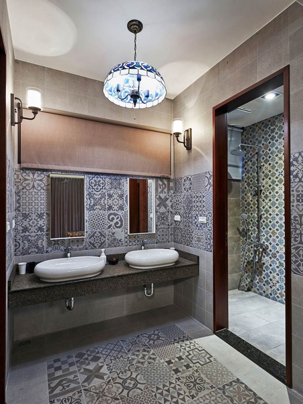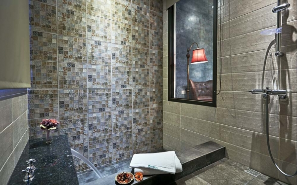 衛浴空間乾淨寬敞,牆上還有各種圖騰意象,重點是還有浴缸可以泡澡,讓你盡情享受美好的夜晚!