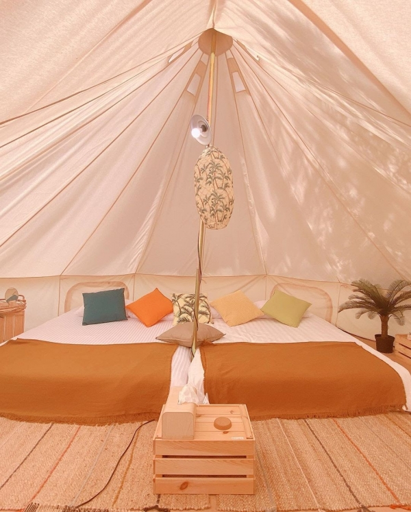 超平價免裝備露營就在這!隱藏於日月潭旁一處私人露營秘境,園區占地約6000坪,提供了超夢幻神殿帳,不只好睡又好拍,且4人房型只要3000元,平均每人750元就能享受豪華露營,是不是划算到爆!