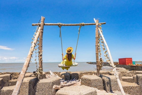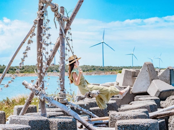 不用跑到沖繩,現在四湖就有沙灘漂流木盪鞦韆!利用海邊廢棄物打造而成,坐在鞦韆上吹著海風,欣賞大海、夕陽美景,加上一排排的白色風車,那畫面實在太美啦!快趁著假日來這邊打卡一波吧!
