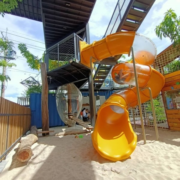 位於永康區的一座640坪親子公園,是由許多繽紛貨櫃堆疊組成,園區內不僅有多樣遊樂設施可以玩之外,還有網美造景可以拍照,最吸睛的是這座兩層樓高的旋轉溜滑梯,簡直玩翻天!另外也有設置美食區,讓你吃喝玩樂一次滿足,假日只要跑一個景點就夠啦!