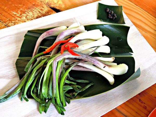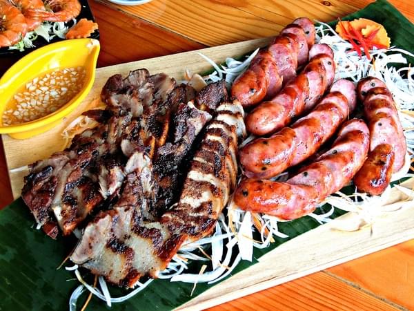 山豬肉肥瘦有度,表面烤的微酥脆 ,沾一點點檸檬汁,味道更加出眾,馬告香腸,獨特辛香味超級加分,吃起來多汁不乾澀 。